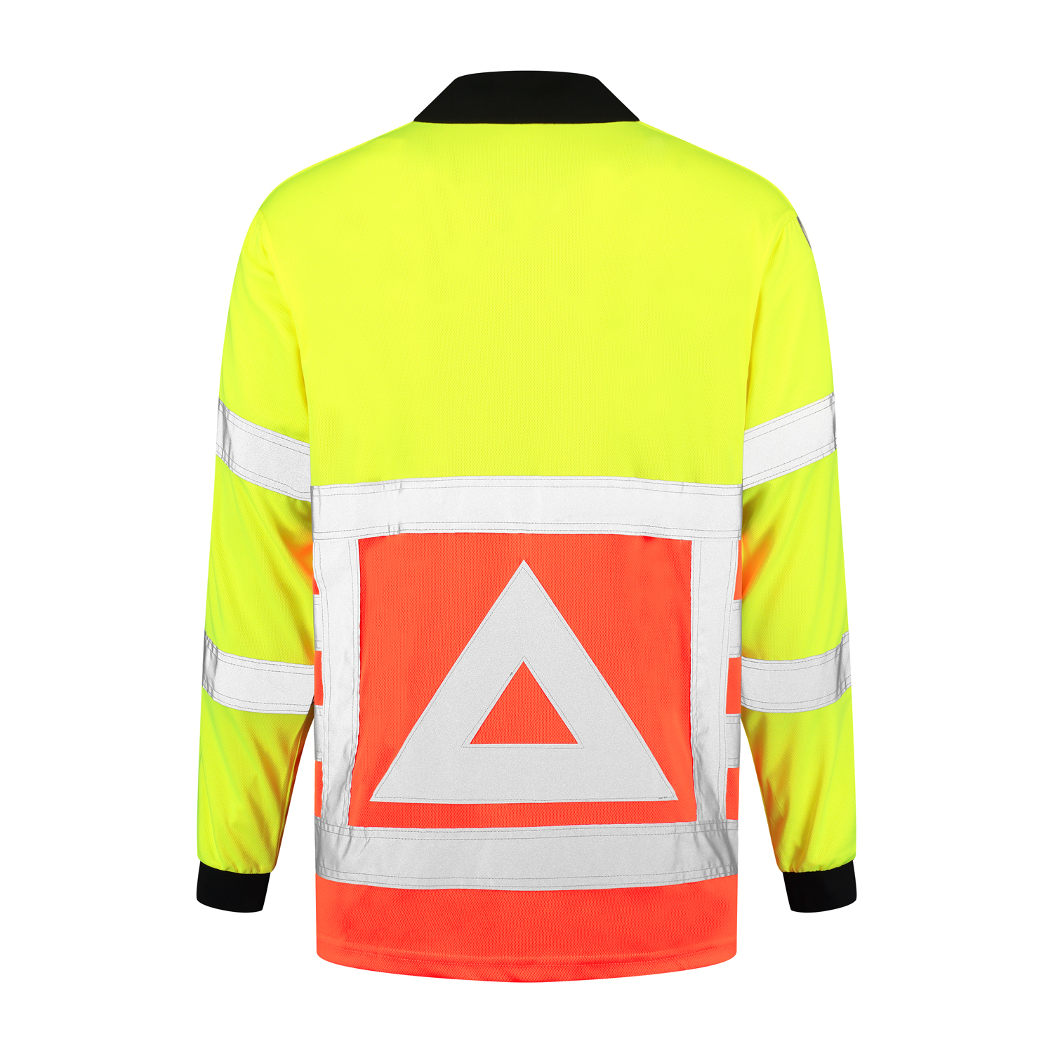 Verkeersregelaarspolo, knoopsluiting, lange mouw, geel-oranje, striping