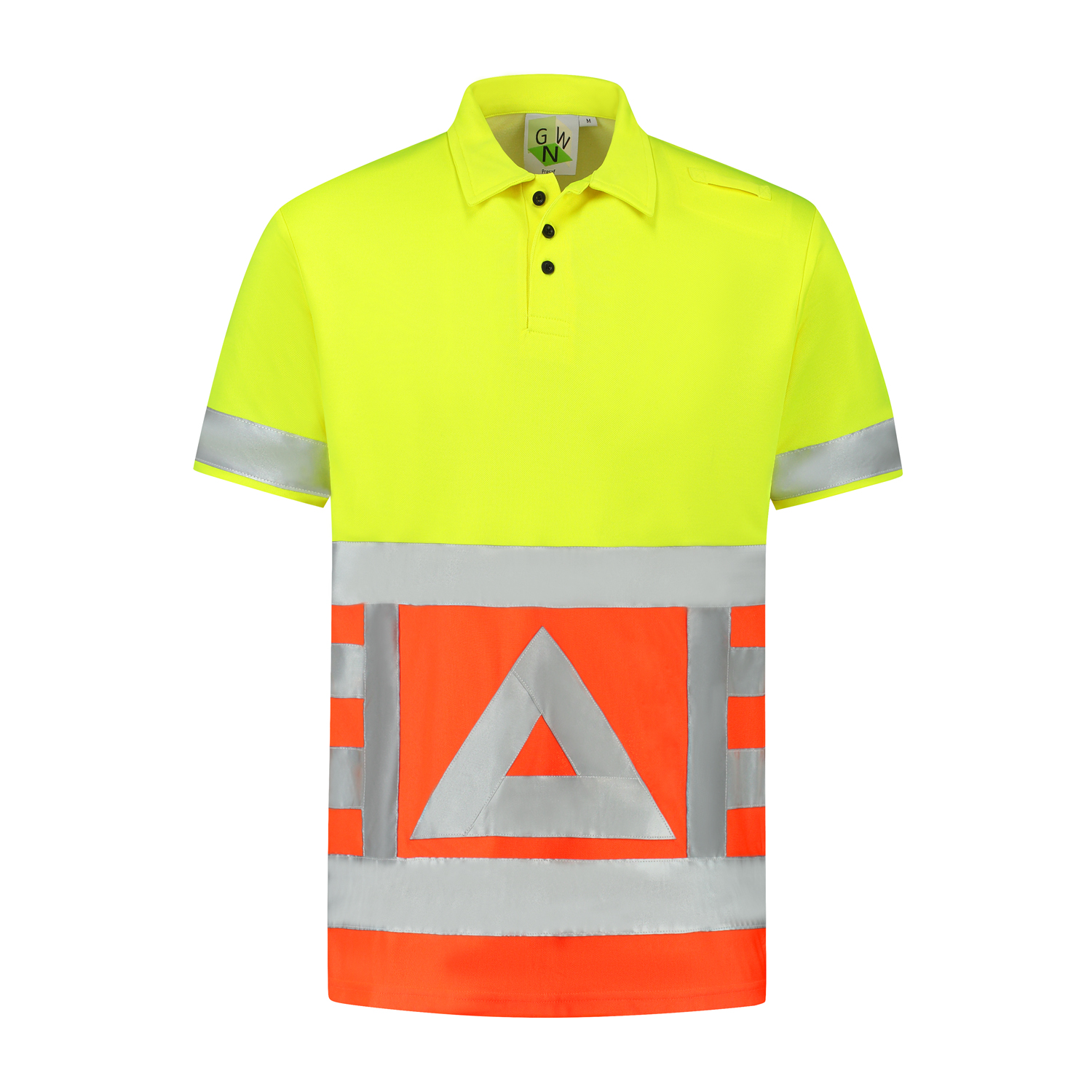 Verkeersregelaarspolo, knoopsluiting, korte mouw, geel-oranje, striping
