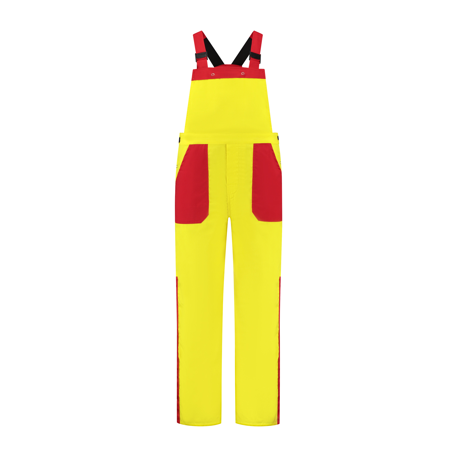 Tuinbroek polyester/katoen, 65% polyester / 35% katoen, 190 gram/m2, 1 grote borstzak met drukknoopsluiting, 2 zijzakken, 2 intasten, achterzak en duimstokzak